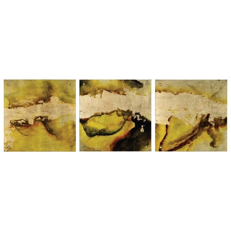 | Renwil - Prints / Paintings - OL1388 - With abstract motifs that are thoroughly modern, this set of three abstract oil paintings adds a warm glow to an eclectic walls. Beneath a Plexiglas pane, rich tones of mustard yellow and black flow across each canvas in the triptych, while a rippling current of gold leaf accents create a beautiful through line, connecting the first painting to the last. Finish: Plexi GlassMaterial: CanvasArtist: ParadisHanging Direction: HorizontalSize: SmallHanging Hardware IncludedShape: SquareThree Piece SetSpecifications:Overall Product Dimensions: 20H X 20W X 1.5DOverall Product Weight: 20 lbs