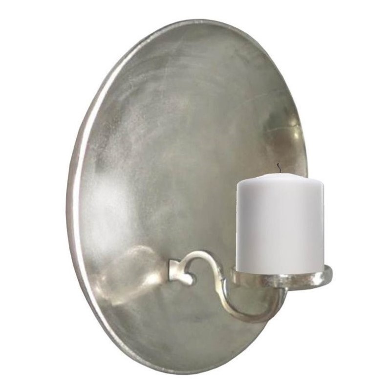 | Renwil - Candle Holders / Lanterns - CAN073 - This aluminum wall-mount candle holder in raw nickel finish presents a pillar candle with an elegant scrolling arm. Finish: Raw NickelMaterial: AluminiumShape: N/AStyle: EclecticAssembly Required: NoImportedSpecifications:Overall Product Dimensions: 24 W x 24 H x 4 DOverall Product Weight: 8 lbs