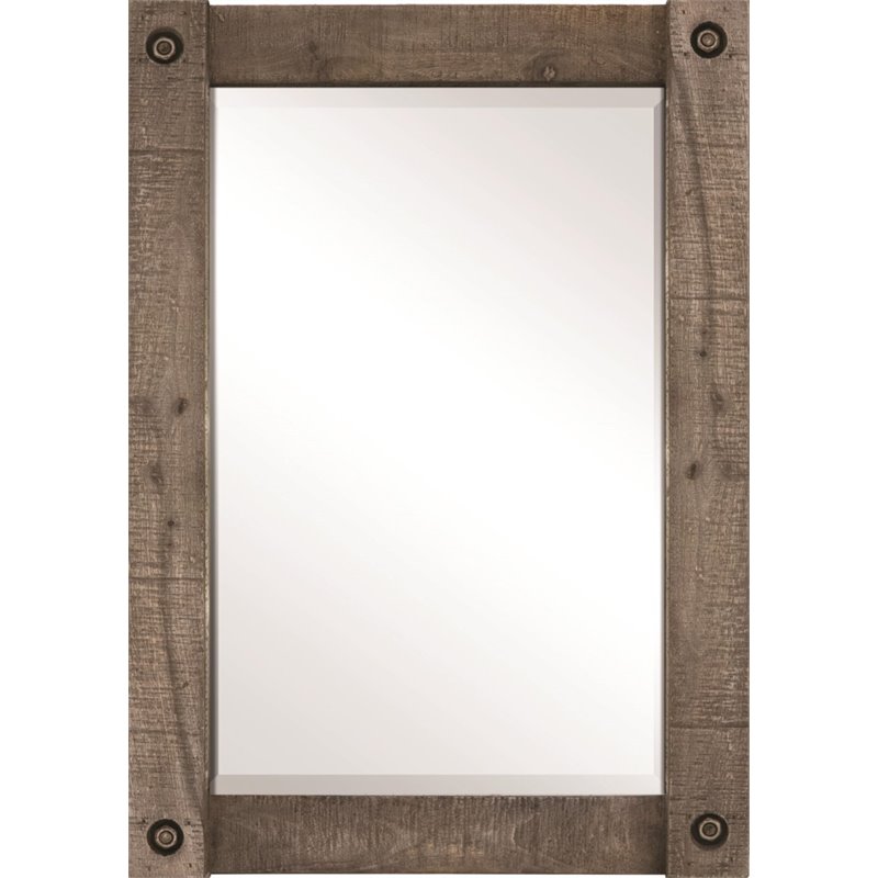 | Renwil - Accent Mirrors - MT1566 - The beauty of this traditional wall mirror lies in the details. Each corner of the weathered mango wood frame is routed with recessed hardware. The exposed bolt heads accessorize an otherwise understated wall mirror with an industrial edge.Finish: WeatheredMaterial: Glass, Mango WoodConfiguration: Horizontal and VerticalResidential/CommericialShape: RectangularStyle: TraditionalHanging Hardware IncludedFramedSpecifications:Overall Product Dimensions: 34H x 23W x 3DProduct Weight: 29 lbs
