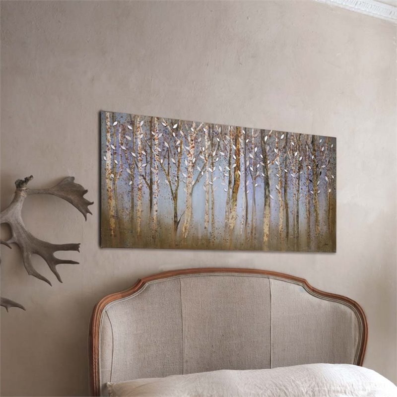 | Renwil - Prints / Paintings - OL1358 - A landscape of trees with mirrored leaves make this modern painting comes alive. Shades of blue and brown are speckled across each tree while mirrored leaf accents play with shadows and light. Product Material: Canvas and Wood; Wood frame; Hangs Horizontally; Hanging Hardware Included. SpecificationsOverall Product Dimensions: 60 H x 30 W x 1.5 D; Overall Product Weight: 11 lbs.