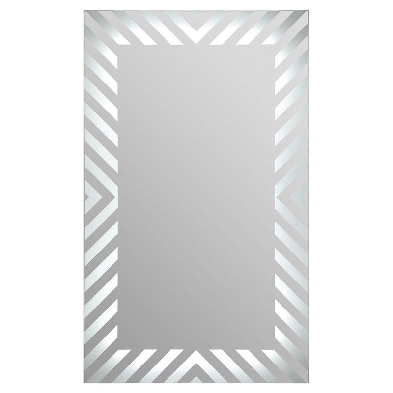 | Renwil - Accent Mirrors - MT1663 - Shiny, mirrored stripes combine with ribbons of etched white glass to create the decorative border of this modern wall mirror. An LED panel illuminates the implied chevron pattern, which surrounds the looking glass in symmetrical sophistication.Finish: White; Glass and Metal frame; Unframed Mirror; Hanging Hardware Included. SpecificationsOverall Product Dimensions: 40 H x 24 W x 1.2 D; Overall Product Weight: 29 lbs.