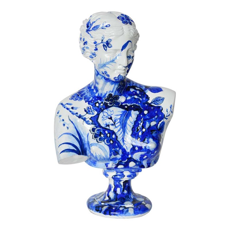 | Renwil - Statuettes / Figurines - STA450 - The feminine figure of an ancient Greek goddess is regaled with an artful arrangement of flowers and scrolls. Cast in white resin to capture the statue’s lifelike detail, blue and white vines and leaves mark the shoulder and face of the sculpture with royal beauty. Richly painted with classical motifs, the decorative detail of this architectural accent adds an element of ancient history to a coffee table or console.Finish: Blue and White; Statue is constructed in polyresin. SpecificationsOverall Product Dimensions: 8 H x 12.5 W x 5 D; Overall Product Weight: 3 lbs.