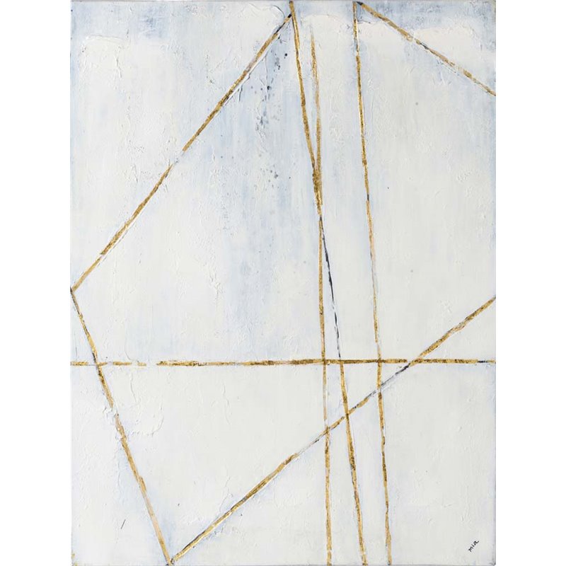 | Renwil - Prints / Paintings - OL1452 - The asymmetric line work of this abstract canvas art piece brings metallic minimalism to modern walls. Subtle gradations in white and gray offer chalky contrast to striking gold leaf lines that traverse the canvas in random streaks. The obscure geometry exudes effortless luxury among the glamorous surroundings of your sanctuary.Style: Glamour; Product Material: Cotton Canvas, Wood; Unframed artwork; Extended edge; Rectangular format hangs vertically; Hanging hardware included. SpecificationsOverall Product Dimensions: 40 H x 30 W x 1.5 D; Overall Product Weight: 8 lbs.