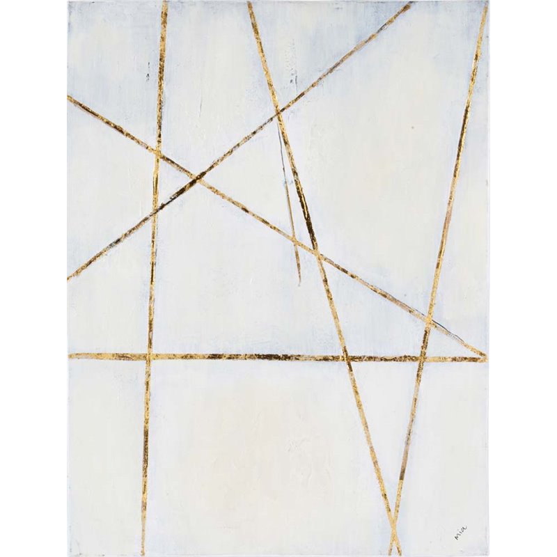 | Renwil - Prints / Paintings - OL1453 - The asymmetric line work of this abstract canvas art piece brings metallic minimalism to modern walls. Subtle gradations in white and gray offer chalky contrast to striking gold leaf lines that traverse the canvas in random streaks. The obscure geometry exudes effortless luxury among the glamorous surroundings of your sanctuary. Style: Glamour; Product Material: Cotton Canvas, Wood; Unframed artwork; Extended edge; Rectangular format hangs vertically; Hanging hardware included. SpecificationsOverall Product Dimensions: 40 H x 30 W x 1.5 D; Overall Product Weight: 8 lbs.