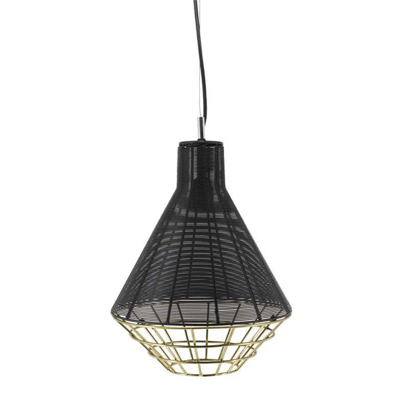 | Renwil - Pendant - LPC4053 - Bring factory style to your family room with the industrial forms of this modern ceiling pendant light. An updated interpretation of warehouse light fixtures, fine lines of matte black iron surround the top of the shiny caged brass shade for the ultimate contrast in mixed metals. The combination of brushed and metallic finishes makes this chic hanging light a suitable option over a formal dining table or casual breakfast nook.Finish: Matte Black and Brass; Style: Scandinavian; Black and shiny brass, iron and brass shade; Switch Type: Hardwire. SpecificationsOverall Product Dimensions: 16 H x 12 W x 12 D; Overall Product Weight: 6 lbs; Max Wattage: 40; Bulb Type: A; Bulb Base: E26; Number of Bulbs: 1.