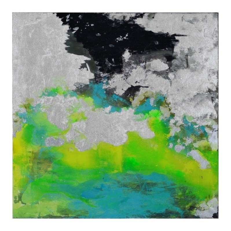 | Renwil - Prints / Paintings - OL1407 - Bring high art to your hallway gallery with the multicolored hues of this modern abstract painting. Waves of vibrant blue and green curl around silver leaf accents. The overall effect is an atmospheric abstract painting on canvas with free-spirited bohemian energy. Finish: MattMaterial: CanvasArtist: ParadisHanging Direction: Horizontal & VerticalSize: MediumHanging Hardware IncludedShape: SquareSpecifications:Overall Product Dimensions: 35H X 35W X 1.5DOverall Product Weight: 5 lbs