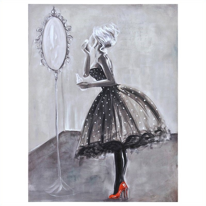 | Renwil - Prints / Paintings - OL856 - This fun hand embellished image features a young women freshening up at a party in her flirty party dress and striking red high heels.In the moment frameless canvas wall artArtist: liza stonesIncludes hanging hardwareHand embellished imageDepicts a young women freshening up at a party in her flirty party dress and striking red high heelsVertical formatLarge sizeSpecifications:Overall Dimensions: 48 H x 36 W