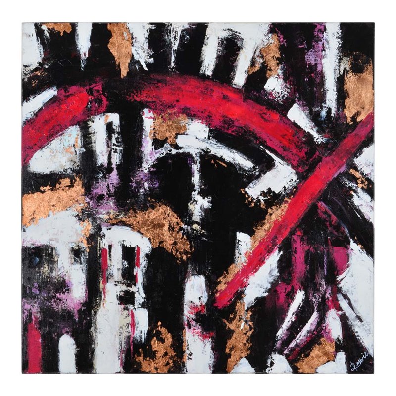| Renwil - Prints / Paintings - OL1463 - The explosive energy of this abstract painting is conceived in sweeping brushstrokes of black, white and pink. The colorful collision is enhanced by metallic splashes of copper leaf that intensify the emotion of the artwork. Hang the canvas horizontally or vertically to enhance its interpretive nature.Style: Glamour; Product Material: Canvas; Unframed artwork; Extended edge; Square format hangs Both ways; Hanging hardware included. SpecificationsOverall Product Dimensions: 45 H x 45 W x 1.5 D; Overall Product Weight: 8 lbs.