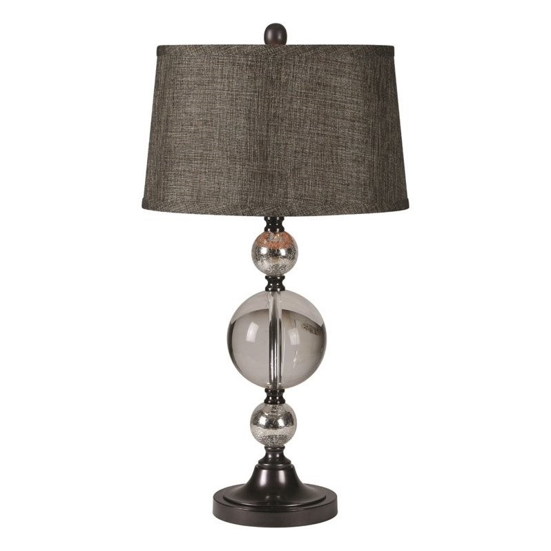 | Renwil - Table Lamps - LPT453 - The Kalika lamp features a crystal base with metal accents and a white silk shade.Finish: BronzeMaterial: Crystal and metalResidential/CommericialMax Wattage: 100WNumber of Lights: 1Requires Bulb Type: BBulb Base: E26Switch Type: 3-WaySpecifications:Overall Product Dimensions: 15 W x 14 H x 27 DOverall Product Weight: 9 lbs.