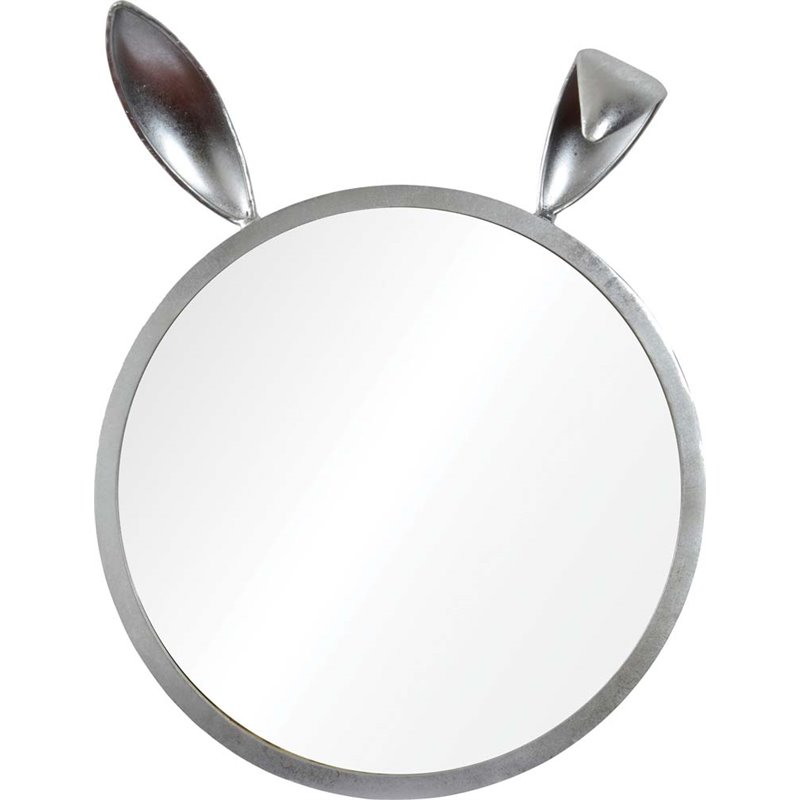 | Renwil - Accent Mirrors - MT1732 - A round wall mirror with a touch of whimsy, this decorative accent is a playful addition to an eclectic penthouse apartment wall. Two rabbit ears are perched atop a metal frame, finished in sparkling silver leaf for elegance among unconventional interiors. The expressive bunny ears above the looking glass turning every reflection into a quirky character.Finish: Silver Leaf; Style: Eclectic; Metal frame; Round format hangs vertically; Framed mirror; Hanging hardware included. SpecificationsOverall Product Dimensions: 26 H x 20 W x 1 D; Overall Product Weight: 11 lbs.
