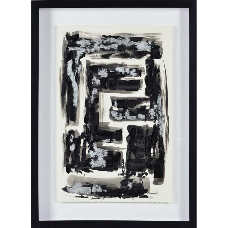 | Renwil - Prints / Paintings - W6359 - Lose yourself in the abstract maze of this modern wall decoration. Hand-painted brushstrokes of black are textured by streaks of gray, creating a passageway of paper through the canvas. Mounted to a white mat, the canvas is centered beneath a clear glass pane and framed in black wood to complement the labyrinth within.Finish: Black; Style: Glamour; Product Material: Paper, Wood, Gloss, MDF; Framed wall decor; Rectangular format hangs vertically; Hanging Hardware Included. SpecificationsOverall Product Dimensions: 26 H x 36 W x 2.2 D; Overall Product Weight: 25 lbs.