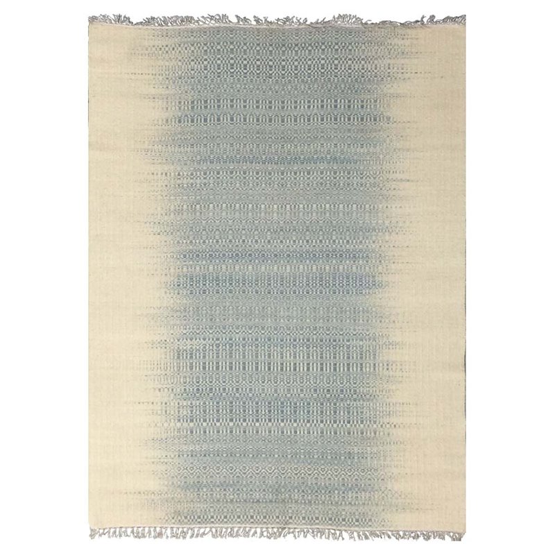 | Renwil - Rugs - RMES0358 - Soften the surface of tile and wood floors with the delicate shades of this neutral area rug. The durable, hand woven flatweave construction is softened by subtle variations of light blue and beige threads. A long-wearing combination of wool and cotton fibers create the perfect union of form and function - strong enough to stand up to high-traffic areas without compromising the integrity of the design.Finish: Light Blue; Style: Contemporary; Pattern: Abstract. SpecificationsOverall Product Dimensions: 0.08 H x 86 W x 93 D; Overall Product Weight: 12 lbs.