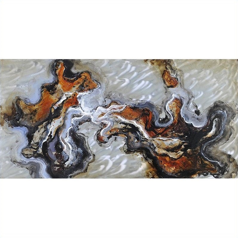 | Renwil - Prints / Paintings - W6117 - This striking abstract is hand painted on a metal background in burnt amber, black and white tones.Blending waters wall decor in multicolorArtist: giovanni russoIncludes hanging hardwareStriking abstract design in burnt amber, black and white tonesHand paintedLarge sizeHorizontal formatSpecifications:Overall Dimensions: 60 H x 30 W