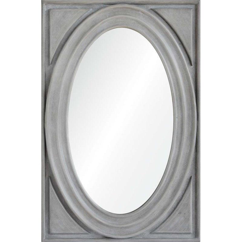 | Renwil - Accent Mirrors - MT1719 - Traditional architectural forms serve as inspiration for the sculptural design of this eclectic wall mirror frame. With shapes reminiscent of coffered ceilings and crown molding, the rectangular frame is perfect hanging alone in an entryway or beside a series of family photos or paintings. A soft gray finish adds a touch of antiquity as the oval looking glass turns every reflection into a portrait.Finish: Gray; Style: Eclectic; Polyurethane frame; Oval format hangs horizontally or vertically; Framed mirror; Hanging hardware included. SpecificationsOverall Product Dimensions: 36 H x 24 W x 1.5 D; Overall Product Weight: 15 lbs.