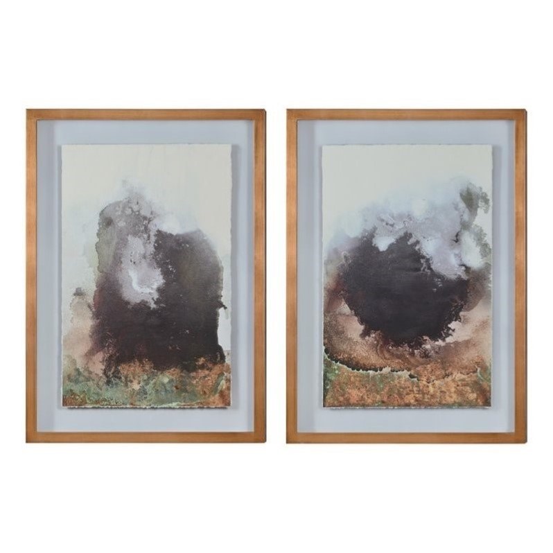 | Renwil - Wall Sculptures - W6277 - A blur of neutral watercolors and the raw, rag paper edge define this abstract wall art set. Copper leaf wood frames bring rustic refinement to both classic and contemporary rooms.Finish: N/AMaterial: Rag paper + Glass + WoodShape: RectangularStyle: TraditionalHanging Hardware Included: YesFramedImportedAssembly Required: N/ASpecifications:Overall Product Dimensions: 36 W x 26 H x 2 DProduct Weight: 33 lbs.