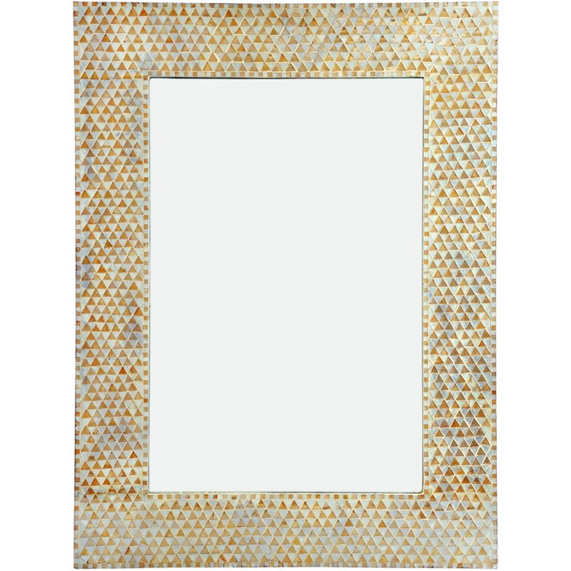 | Renwil - Accent Mirrors - MT1575 - The ultra-modern metallics of this decorative wall mirror are triangulated into delicately placed mosaic pieces of silver and gold. The geometric pattern takes on the look of reptilian scales, which flicker and sparkle in everyday light.Finish: Gold, BrownMaterial: Glass, MDF, IronConfiguration: Horizontal and VerticalResidential/CommericialShape: RectangularStyle: BohemianHanging Hardware IncludedFramedSpecifications:Overall Product Dimensions: 36H x 48W x 0.75DProduct Weight: 33 lbs