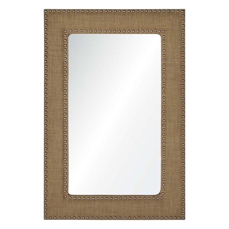 | Renwil - Accent Mirrors - MT1667 - Redress a room with the tailored detail of this traditional wall mirror. Exposed rivet heads accentuate the rounded edges of the looking glass, while the upholstered wood frame, wrapped in linen, coordinates beautifully with furniture and textiles. Finish: Linen; Wood frame; Framed Mirror; Hanging Hardware Included. SpecificationsOverall Product Dimensions: 36 H x 24 W x 1.5 D; Overall Product Weight: 15 lbs.