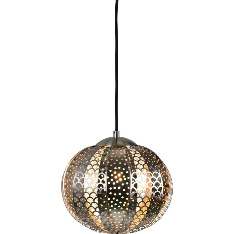 | Renwil - Pendant - LPC4070 - The bohemian beauty of this decorative ceiling pendant light casts a mystical glow across modern rooms. Punctured petals of stainless steel are surrounded by intricate layers of metal latticework, turning illumination into an art form. Suspended by a single black cord, the combination of patterns creates an intriguing lantern for a bedside table or reading nook.Finish: Stainless Steel; Style: Bohemian; Stainless steel shade; Switch Type: Hardwire. SpecificationsOverall Product Dimensions: 9 H x 10 W x 10 D; Overall Product Weight: 2 lbs; Max Wattage: 60; Bulb Type: A; Bulb Base: E26; Number of Bulbs: 1.