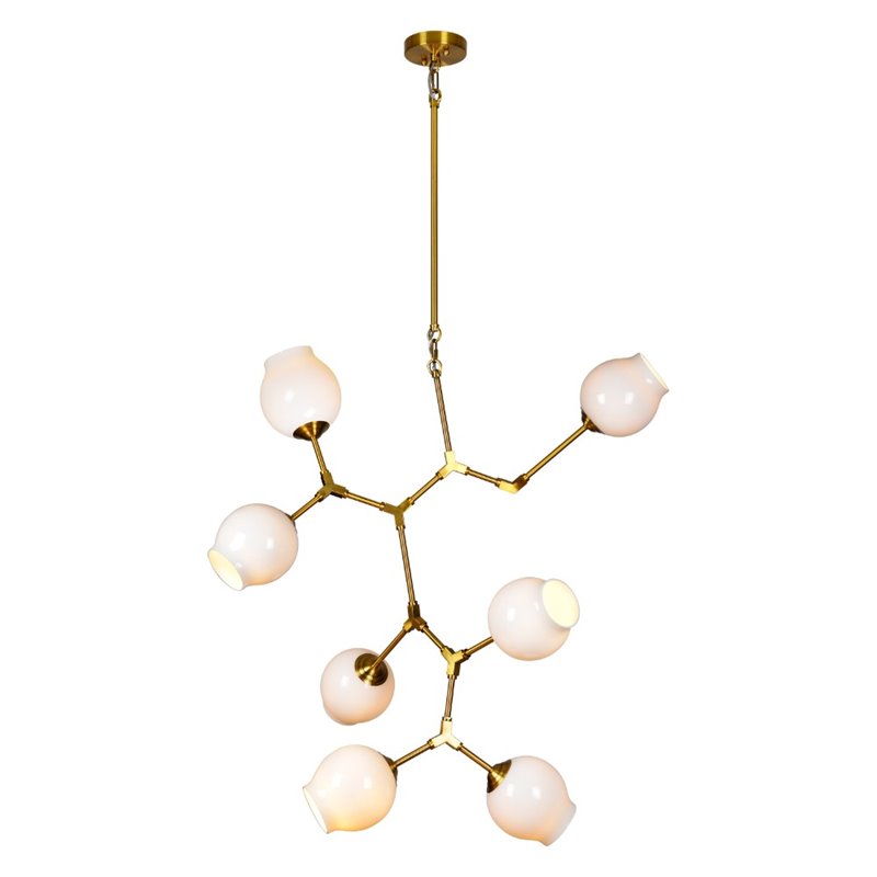 | Renwil - Chandeliers - LPC4035 - Shifting arms of twisted steel branch out to shape the structure of this modern pendant light. Individual glass shades surround each bulb and send a soft burst of light in every direction. Suspend this ceiling light fixture over a kitchen table for a dramatic effect to everyday dining. Finish: Gold PlatedMaterial: Steel and GlassResidential and CommericialStyle: ModernSpecifications:Overall Product Dimensions: 32H x 32W x 38DProduct Weight: 18 lbsSwitch Type: HardwireNumber of Lights: 7Bulb Base: E27Max Wattage: 40