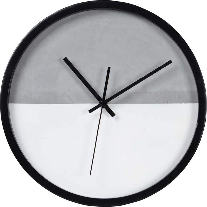 | Renwil - Wall Clocks - CL208 - Whether your glass is half full or half empty, this modern wall clock never lets you lose track of time. The circular clock face is split in half, contrasting raw gray cement with a slick white finish and matte black hour, minute and second hands. Surrounded by a matte black metal frame, the simple styling of this decorative timepiece brings a sense of balance to every interior.Finish: Gray, Matte White, and Matte Black; Clock is constructed in concrete. SpecificationsOverall Product Dimensions: 12 H x 12 W x 1.5 D; Overall Product Weight: 7 lbs.