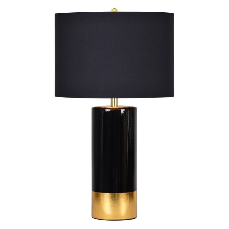 | Renwil - Table Lamps - LPT631 - This black and gold contemporary table lamp brings a touch of Hollywood glamour to any interior. A solid black round shade is lined in gold, reflecting the colors in the base. Finish: Black & GoldMaterial: CeramicResidential/CommericialMax Wattage: 100WNumber of Lights: 1Requires Bulb Type: ABulb Base: E26Switch Type: 3-WaySpecifications:Overall Product Dimensions: 28.5 W x 16 H x 16 DOverall Product Weight: 4.4 lbs.