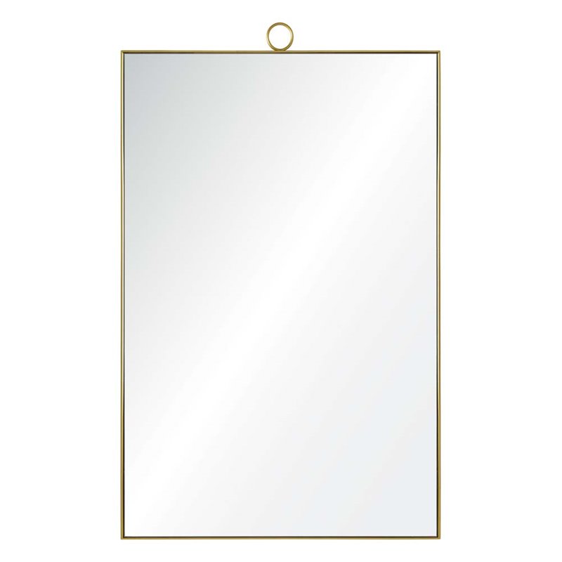 | Renwil - Accent Mirrors - MT1698 - The simple sophistication of a single loop defines the elegant design of this modern wall mirror. The thin brass mirror frame features an ornamental circle at the top center of the looking glass for an understated look that never goes out of style. The delicate embellishment is everything you need to dress up the walls behind a bathroom vanity or dressing table.Finish: Brass; Style: Modern; Metal frame; Rectangular format hangs horizontally or vertically; Framed mirror; Hanging hardware included. SpecificationsOverall Product Dimensions: 38 H x 24 W x 1 D; Overall Product Weight: 22 lbs.