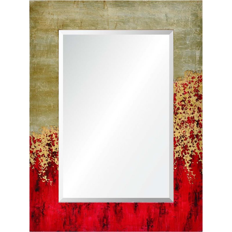 | Renwil - Accent Mirrors - MT1715 - A dramatic ombre and metallic accents turn this decorative wall mirror into a modern art piece. Painted in a fiery palette of red and gold, the rectangular mirror frame surrounds every reflection with a flickering gradient of gold leaf accents. An opulent addition to the top of a staircase or at the end of a hallway, this decorative wall mirror adds a bold pop of color to intrepid interiors.Finish: Multicolor; Style: Modern; MDF frame; Rectangular format hangs vertically; Framed mirror; Hanging hardware included. SpecificationsOverall Product Dimensions: 40 H x 30 W x 1.5 D; Overall Product Weight: 26 lbs.