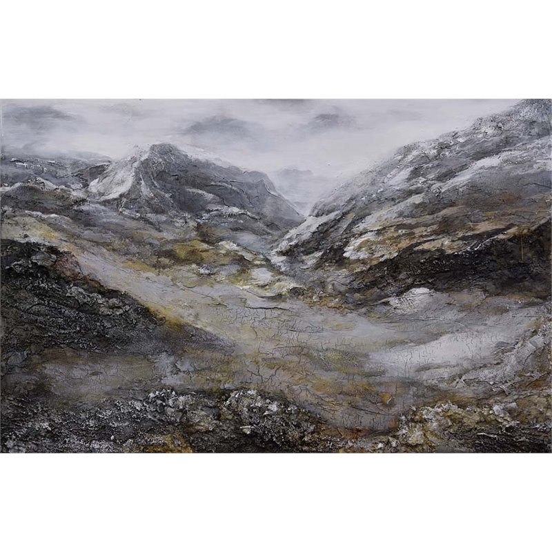 | Renwil - Prints / Paintings - OL1490 - The masterful hand-painted techniques of this traditional canvas art piece create the realistic textures of cliffside crag formations. Soft brushstrokes of gray and white depict a stormy skyline as layers of black, brown and gray crackle to mimic the rocky canyons of a rustic mountainside. The low profile of the thin charcoal gray picture frame complements the naturalistic theme of the canvas.Style: Traditional ; Product Material: Canvas; Framed artwork; Polystyrene frame with a Charcoal finish; Rectangular format hangs horizontally; Hanging hardware included. SpecificationsOverall Product Dimensions: 40 H x 60 W x 1.7 D; Overall Product Weight: 15 lbs.